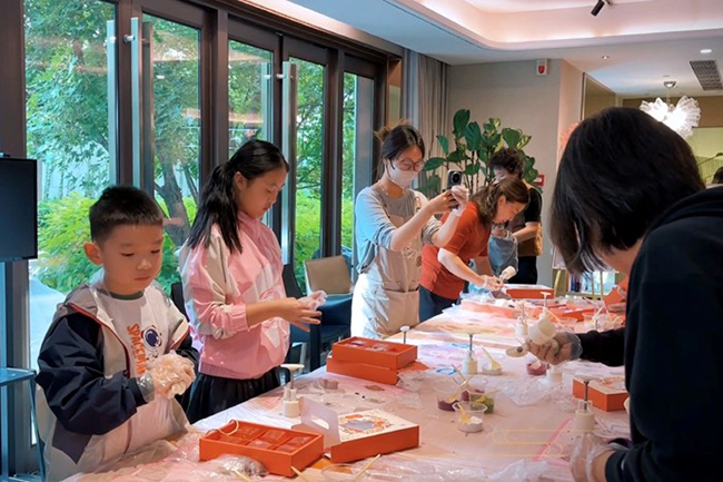 北京金魚池項(xiàng)目為假期“增光添彩”,主干道和出入口懸掛起鮮艷的國(guó)旗與彩旗,以中國(guó)紅點(diǎn)亮歸家路小區(qū)重點(diǎn)區(qū)域安裝大型戶外燈籠,暖黃燈光在夜色中為業(yè)主照亮歸途秦皇島德賢公館、德賢華府項(xiàng)目舉辦月圓人團(tuán)圓·情滿社區(qū)間包月餅活動(dòng),百余名業(yè)主歡聚一堂,共迎中秋、享喜悅,將月餅打包贈(zèng)予獨(dú)居老人和困難家庭,傳遞節(jié)日溫暖。興隆項(xiàng)目組織開展“濃濃鄰里情 共享百家宴”主百家宴活動(dòng),分享災(zāi)后重建期間的點(diǎn)滴感動(dòng)。灤平項(xiàng)目聯(lián)合北京同仁堂開展“月滿華誕 醫(yī)暖萬家”主題公益活動(dòng),通過免費(fèi)義診與健康體驗(yàn)相結(jié)合的形式,將便民健康服務(wù)送至業(yè)主身邊。唐山德賢公館鄰里中心開展月滿中秋·禮贊國(guó)慶主題社區(qū)活動(dòng),融合DIY月餅制作與祖國(guó)等環(huán)節(jié),將傳統(tǒng)節(jié)日文化與趣味互動(dòng)相結(jié)合,增進(jìn)鄰里情誼,點(diǎn)燃愛國(guó)熱情。包頭德賢公館項(xiàng)目舉辦中秋百家宴,吸引超過300位業(yè)主踴躍參與悠揚(yáng)的歌聲、靈動(dòng)的舞蹈引來此起彼伏的掌聲、笑聲、歡呼聲,交織成一曲動(dòng)人的鄰里和鳴。南京盛世濱江案場(chǎng)開展喜迎中秋國(guó)慶雙節(jié)聯(lián)誼會(huì)雙節(jié)嘉年華活動(dòng),包括巧手做月餅、手工兔子燈籠、繡球燈制作、投壺、套圈以及桂花香包制作等環(huán)節(jié),現(xiàn)場(chǎng)氛圍喜慶熱烈。南京錦繡和鳴案場(chǎng)開展花好月圓手作會(huì)主題活動(dòng),營(yíng)造出濃濃的家國(guó)團(tuán)圓氛圍。廣州逸公館、逸臺(tái)項(xiàng)目開展“中秋游園活動(dòng)”,設(shè)置多個(gè)兼具傳統(tǒng)文化與趣味的體驗(yàn)環(huán)節(jié),包括手工燈籠DIY、投壺競(jìng)技、非遺糖水制作、月餅茶歇品鑒等。珠海逸公館、口岸大廈項(xiàng)目開展雙節(jié)同輝 情滿家園主題活動(dòng),工作人員身著統(tǒng)一制服,笑容洋溢,分組攜帶精心準(zhǔn)備的月餅和國(guó)旗,穿梭于各個(gè)樓層,逐戶傳遞節(jié)日問候。